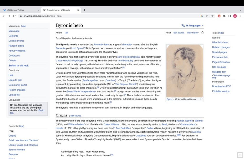 As I was live-tweeting on my profile, I expanded the ‘origins of the Byronic Hero’ section a bit, noting how fiction and reality blended for some readers, and backed it up with the necessary citations.
