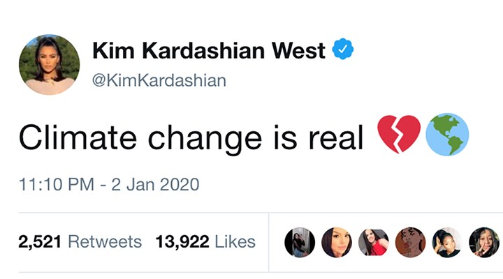 The image you have just seen is me trying to make a joke, mainly. I say mainly because it is extremely hilarious that Kim Kardashian, widely known for her life of luxury and with no past and current regard for the environment, is the one tweeting such a “duh” claim.